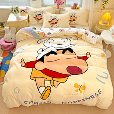 毛巾绣冬季牛奶绒四件套卡通蜡笔小新双面珊瑚绒厚被套宿舍三件套