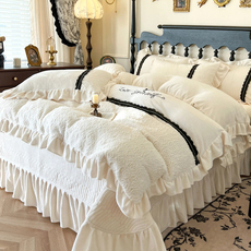 法式浪漫婚庆牛奶绒四件套冬季保暖珊瑚绒公主风被套毛绒结婚床品