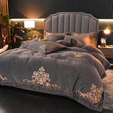 高档欧式刺绣牛奶绒四件套双面绒冬季珊瑚绒法兰绒加厚保暖绒被套