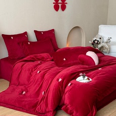 冬季加厚牛奶绒结婚四件套高级感红色珊瑚绒被套婚庆喜被陪嫁新婚