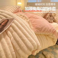 兔兔绒床上四件套冬季加绒超厚毛绒珊瑚牛奶绒冬天床品被套床单三