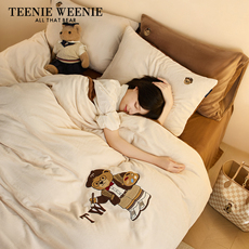 TeenieWeenie小熊毛巾绣加厚牛奶绒四件套珊瑚绒加绒被套床单冬季
