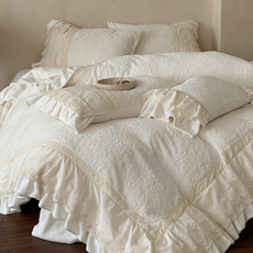 法式赫本风牛奶绒床上四件套花边款双面加绒被套床单珊瑚绒三件套