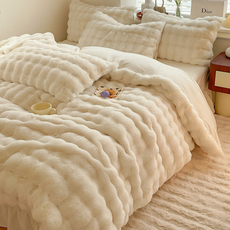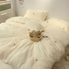 韩系可爱小兔贴布绣冬季保暖牛奶绒毛球款四件套舒适珊瑚绒三件套