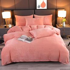 9斤加厚保暖纯色牛奶绒四件套冬季金貂绒法兰绒珊瑚绒被套4件套