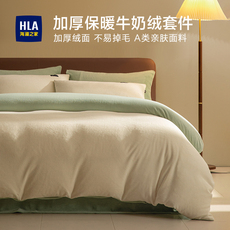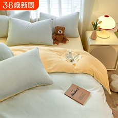 一默牛奶绒四件套美拉德风加绒加厚被套床单秋冬季法兰绒珊瑚绒床