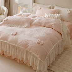 冬季少女加厚牛奶绒四件套公主风双面毛绒珊瑚绒花边被套夹棉床盖