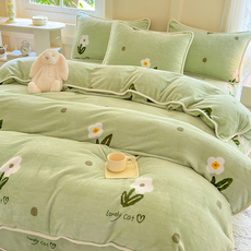 加厚牛奶绒床上四件套冬季款珊瑚绒床单双面绒被套法兰绒加绒床品