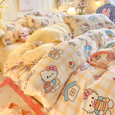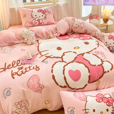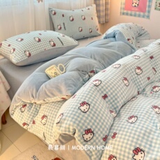 猫人牛奶绒四件套秋冬加绒加厚冬季被套珊瑚绒宿舍绒面床上三件套