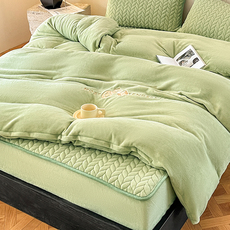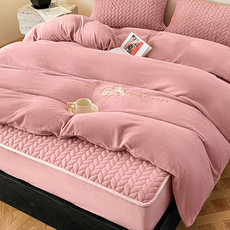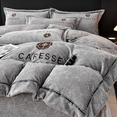 冬季夹棉床笠款加绒牛奶绒四件套冬季加厚珊瑚绒被套三件套高级感