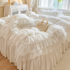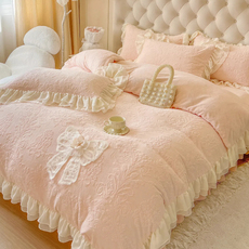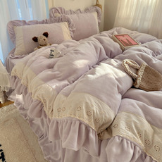 冬季浪漫法式花边牛奶绒床裙四件套公主风珊瑚绒加绒被套床单床笠