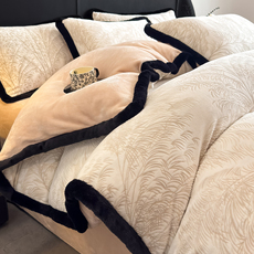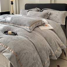 2025新款轻奢雕花牛奶绒床品四件套双面加厚法莱绒被套珊瑚绒床单