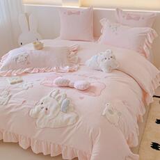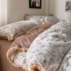 冬季ins少女保暖毛巾绣牛奶绒四件套双面绒珊瑚绒被套床单三件套