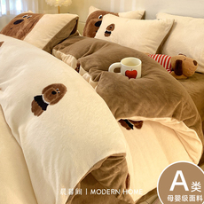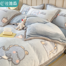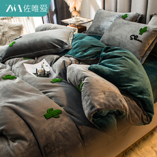 冬季保暖A类婴儿级牛奶绒四件套双面加厚珊瑚绒被套加绒床上用品