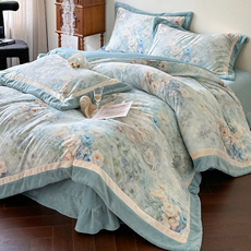 法式高端复古风加厚牛奶绒四件套褶皱被套珊瑚绒冬季公主被套床品