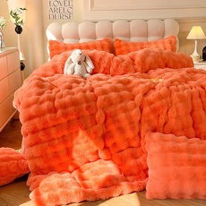 牛奶绒四件套2025新款秋冬季珊瑚绒床单被套法兰绒橘色床上兔毛绒