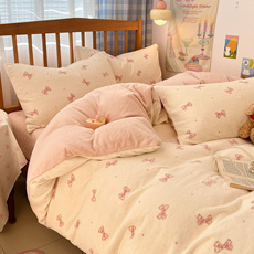 韩系立体蝴蝶结牛奶绒四件套冬季加厚兔毛绒保暖珊瑚绒宿舍三件套