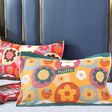 高密纯棉纱布枕巾一对装四季新款卡通防滑透气成人家用全棉枕头巾
