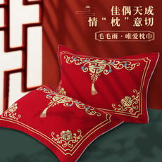 纱布棉一对装成人双面提花布艺枕巾柔软四季单人高档婚庆回礼盖巾