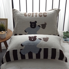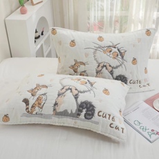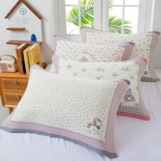 纯棉加厚纱布枕巾一对装可爱全棉柔软卡通枕头巾透气成人家用盖巾