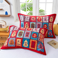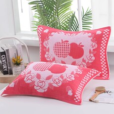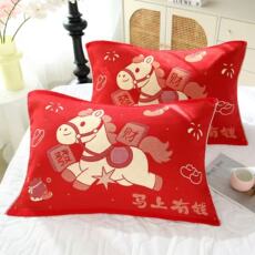 26马年新年款大红八层纯棉纱布加厚加大枕巾全棉成人枕头盖巾一对