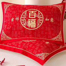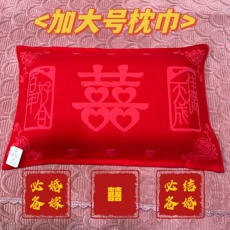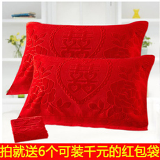 大红色枕巾一对纯棉加大加厚枕头巾婚庆提花喜字纱布结婚枕巾春季