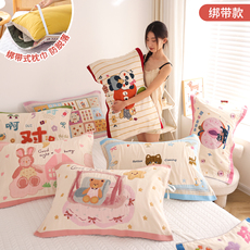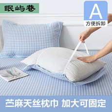 A类苎麻枕巾枕套成人天丝盖巾带绑带儿童枕头套可机洗防滑四季
