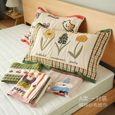 高密纯棉纱布碎花枕巾一对装全棉卡通家用枕头盖巾吸汗四季通用款