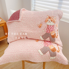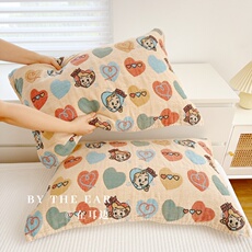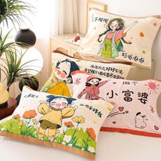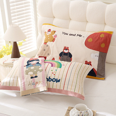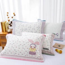 纯棉纱布枕巾一对装四季通用吸汗透气可爱卡通全棉不掉毛枕头盖巾