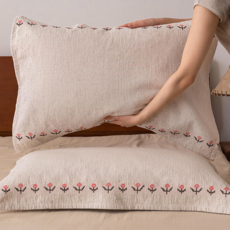 纯棉汉麻枕巾一对装加大加厚枕头巾夏季透气防滑不脱落枕头盖巾