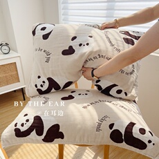 幸运小熊猫|纯棉纱布枕巾加厚柔软透气吸汗单人全棉枕头巾一对装