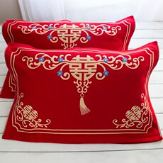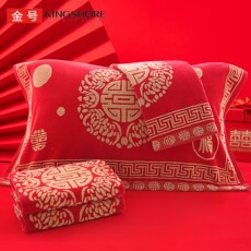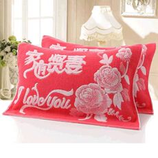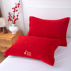 结婚枕巾纯棉枕头巾一对喜庆红色高档陪嫁婚庆情侣喜字加厚
