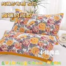 天阳水晶棉枕巾纯棉一对装四层纱布单人男女情侣防螨柔软枕头盖巾