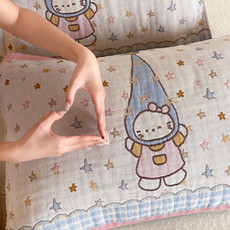 八层纯棉纱布枕巾一对装治愈系成人枕头巾加厚卡通柔软全棉枕盖巾