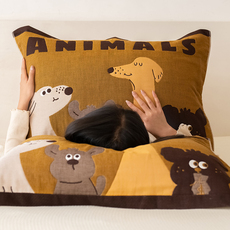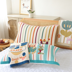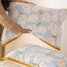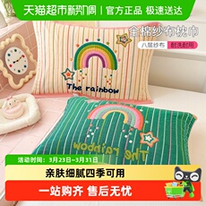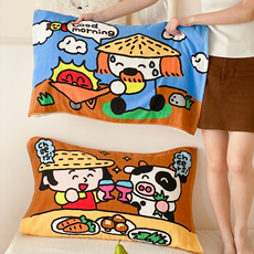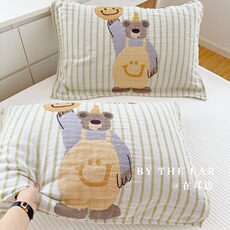熊先生|卡通可爱全棉四层纱枕巾一对装柔软单人枕头巾透气吸汗