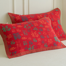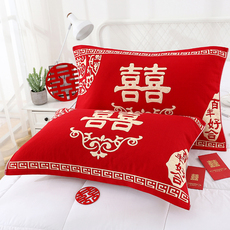 百福纯棉枕巾一对装成人家用全棉纱布枕头巾结婚婚庆红色盖巾垫巾
