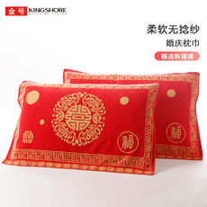 纯棉枕巾结婚庆大红色喜庆一对装成人情侣新婚礼品纱布棉枕头盖巾
