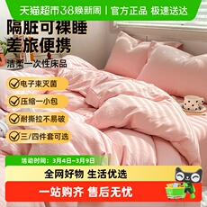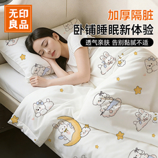 无印良品床笠一次性床上四件套床单被套枕套旅行用品住酒店隔脏厚