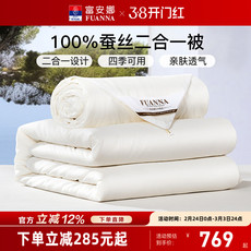 罗莱家纺26新品全棉提花100%蚕丝被子可机洗免被套二合一子母被芯