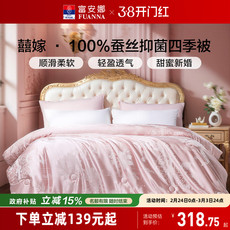恒源祥婚庆抗菌100桑蚕丝被芯提花四季双人陪嫁婚礼结婚秋冬被子