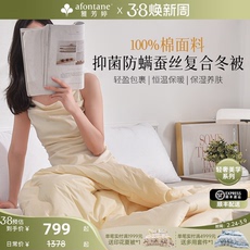 水星家纺蚕丝澳洲羊毛二合一被裸睡抑菌子母被子保暖被芯冬季床品