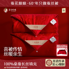 水星家纺桑蚕丝被全棉结婚庆喜被四季春秋被子母被芯冬被二合一被