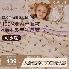 英氏儿童100%桑蚕丝被子母被美利奴可水洗羊毛被保暖四季通用被芯