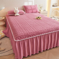 加厚牛奶绒床裙单件冬季婴儿法兰绒夹棉带裙边床笠防滑珊瑚绒床罩