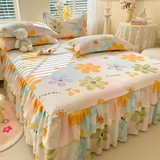 2026年床裙单件四季通用纯色水洗棉床笠遮丑下摆花边款公主风床罩