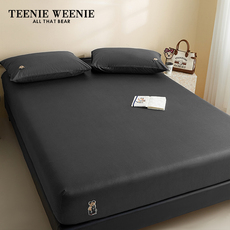 TeenieWeenie深灰色全棉刺绣床笠三件套纯棉床罩单件床垫保护套