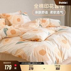 洁丽雅春季纯棉四件套100全棉被套床单床品春秋款宿舍床上三件套