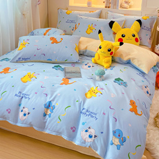 皮卡丘全棉四件套卡通儿童纯棉床单被套宝可梦学生宿舍床上三件套