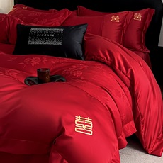 新中式大红色婚庆四件套100S长绒棉被套纯棉床单结婚喜被床上用品