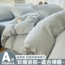 A类全棉条纹床上四件套纯棉双层纱单被套学生宿舍床单三件套床笠4